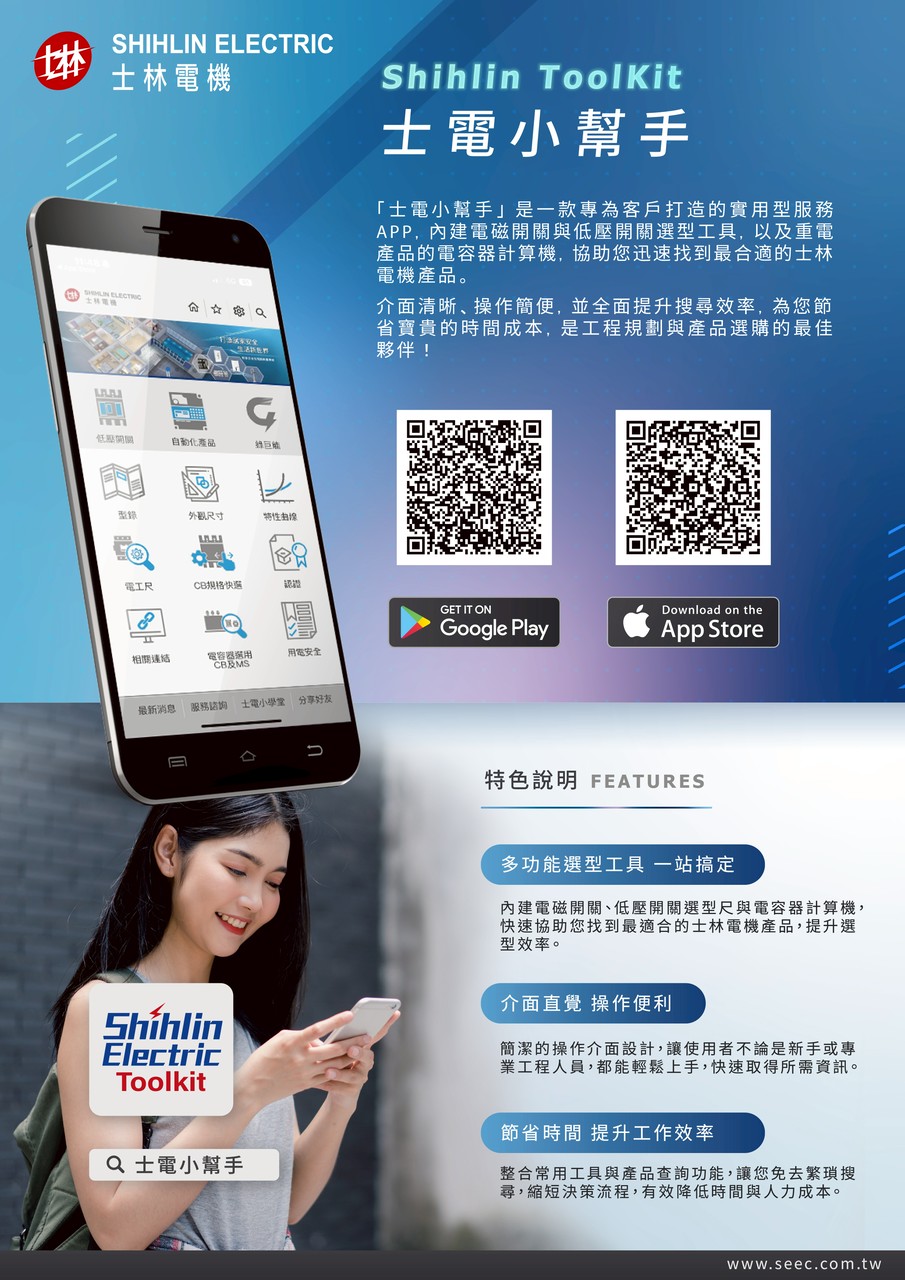 士電小幫手是一款為服務客戶而生的APP,內容包含電磁開關、低壓開關選用尺,