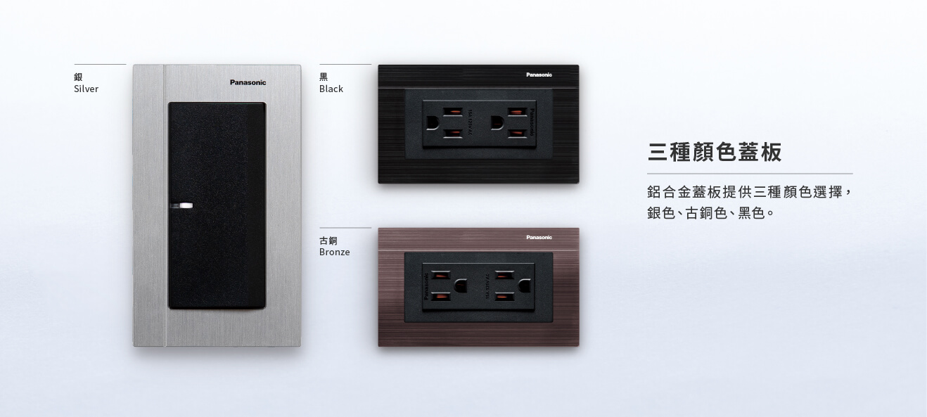 鋁合金蓋板提供三種顏色選擇,銀色、古銅色、黑色。