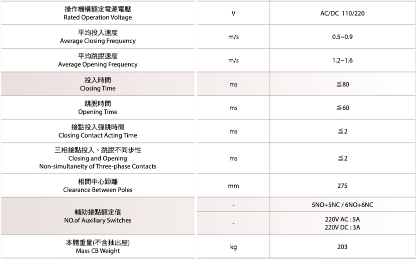 - 操作機構為手動或電動彈簧儲能式,可選擇交流或直流操作