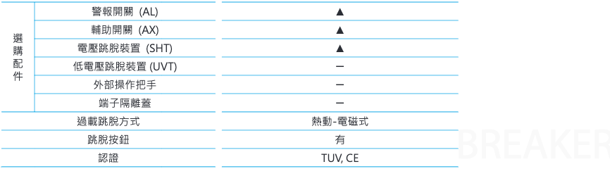 - 跳脫方式:熱動電磁式