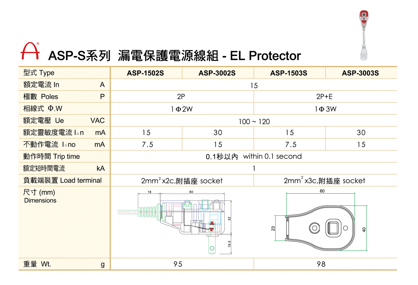 ASP-D系列 漏電保護線組及插座(ASP-S系列停產)
