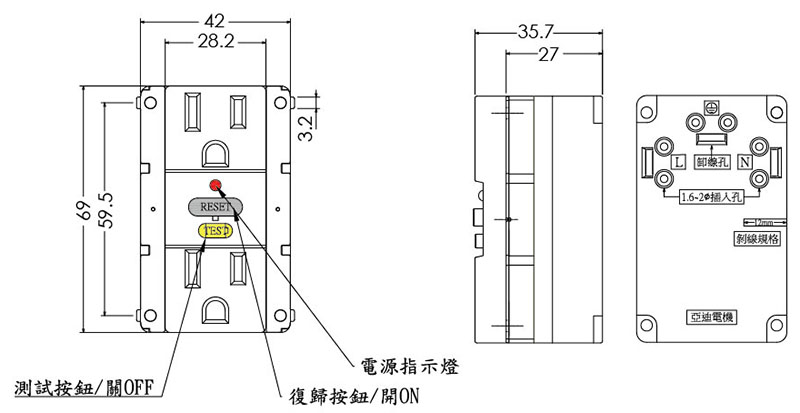 該插座的額定電壓為125伏特,適用於國內的電力供應。額定靈敏度電流為15毫安,這意味著當漏電電流達到或超過15毫安時,插座將迅速觸發動作,切斷電路以保護使用者的安全。不動作電流為7.5毫安,是靈敏度電流的一半。